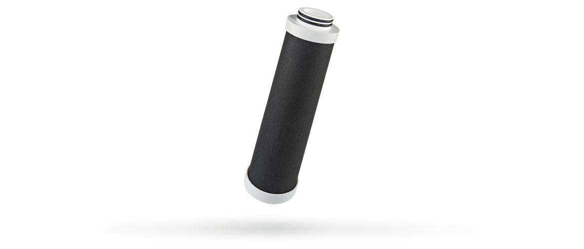 Los cartuchos para filtro CA SE BX (SOE-junta tórica 222) con acoplamiento rápido y doble junta tórica de 45 mm han sido realizados con un bloque de carbón activado derivado de cáscaras de coco