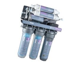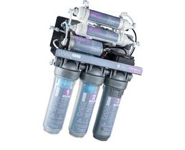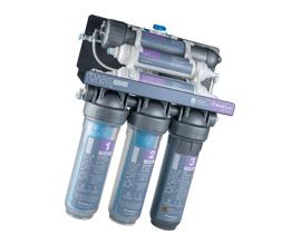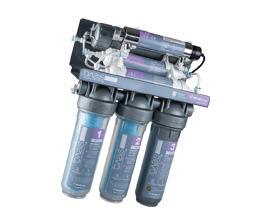 - Prefiltración: 3 cartuchos de alta eficacia filtran y tratan el agua para prepararla para las etapas siguientes eliminando los sedimentos (como óxido, cal, limo) y reduciendo los olores y los COV (compuestos orgánicos volátiles)