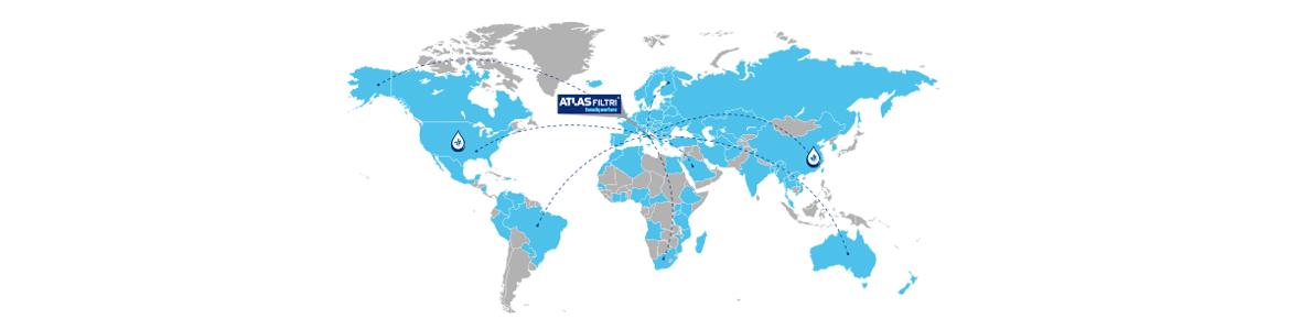 密集的销售网络使我们畅销全世界90多个国家; 我们的产品分布在全球各重要地区,显示了我们对市场的卓越掌控。我们是一个有组织的结构体,在地理上靠近客户,以便能提供完整、高效、有力的解决方案──这就是为什么我们在美国和中国设立分部的原因,这也是我们公司在意大利的现行工作模式。我们集团能跻身国际净水领域的佼佼者行列,法宝便是贴近客户并及时为客户排忧解难。